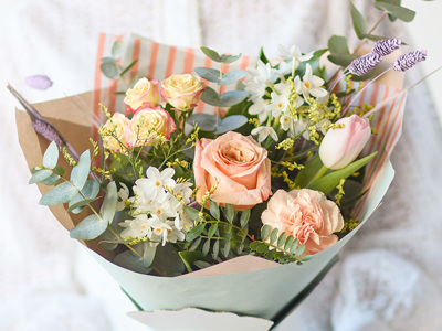 Fresh and dried flowers and foliage in on trend soft, muted tones. Expect blooms in peach, lemon and lilac shades.