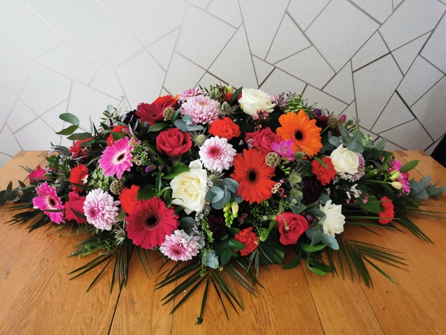 A Selection of blooms, including roses, gerberas and chrysanthemums and other seasonal flowers and foliage.